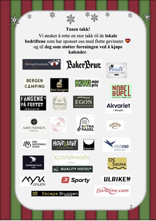 Bak hver luke finner du muligheten til å vinne flotte premier fra lokale bedrifter – og samtidig gir du en gave som varer langt utover jul. Inntektene går til viktige tiltak som støttegrupper, aktiviteter og informasjonstiltak for våre medlemmer.